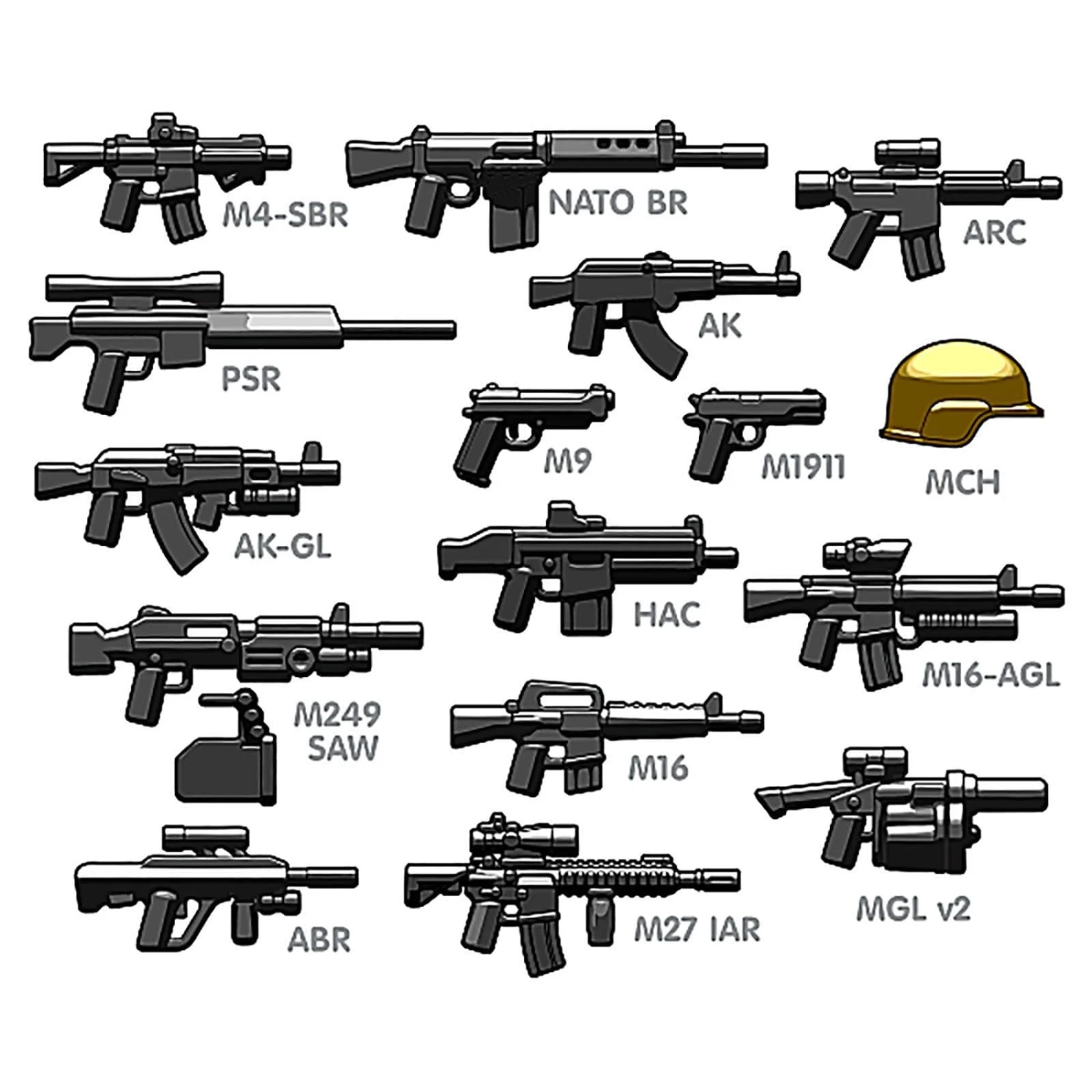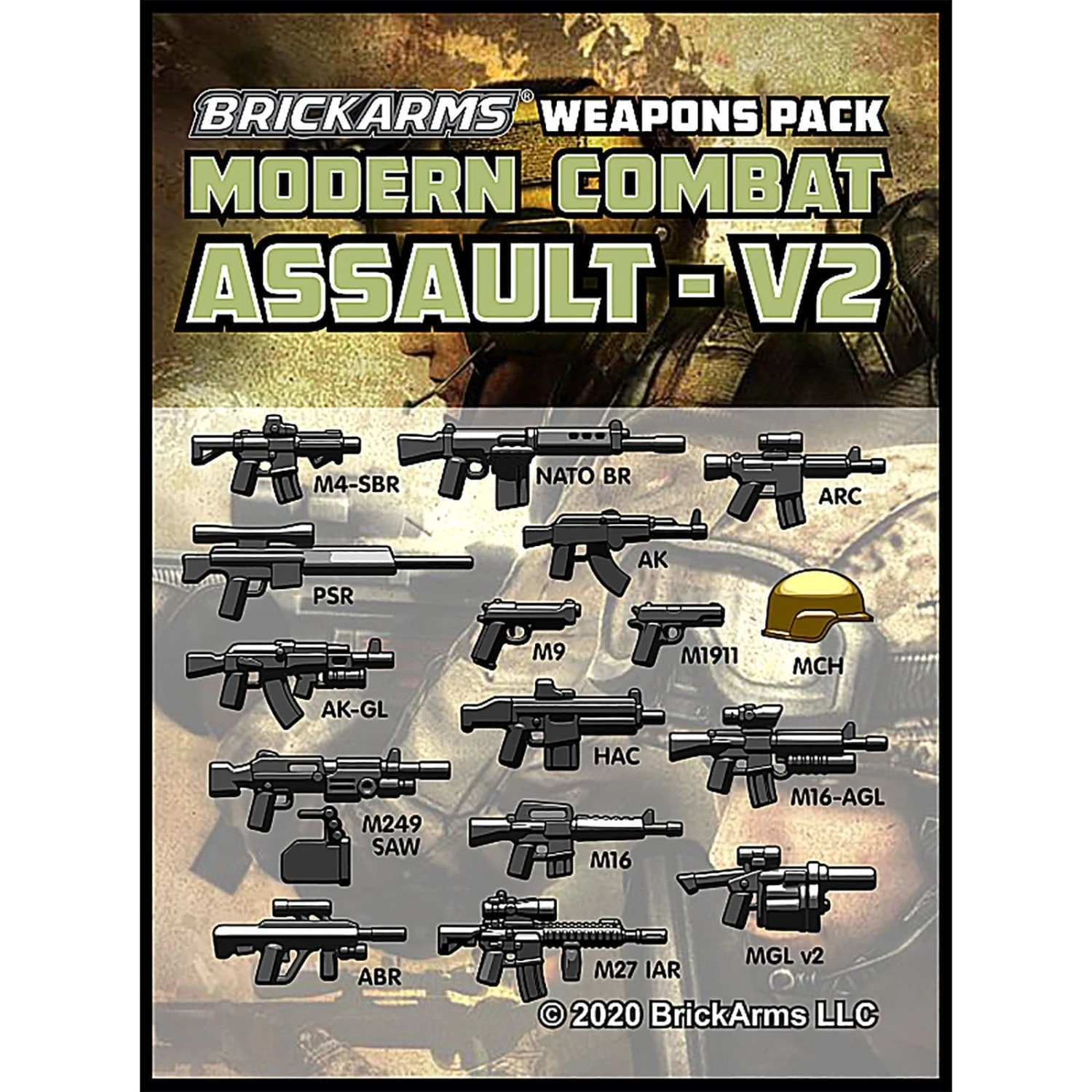 Heavy firepower for heavy action, the BrickArms Modern Combat Assault Pack v2 includes a variety of weapons to add a full metal storm to any build!