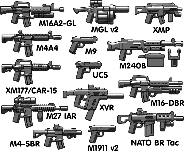 Equip your troops for the bleeding-edge of minifigure battle with the BrickArms Modern Combat Frontline Pack! From machine guns to pistols to compact tactical carbines, the Frontline Pack includes enough classic and brand new BrickArms firepower to ensure victory!