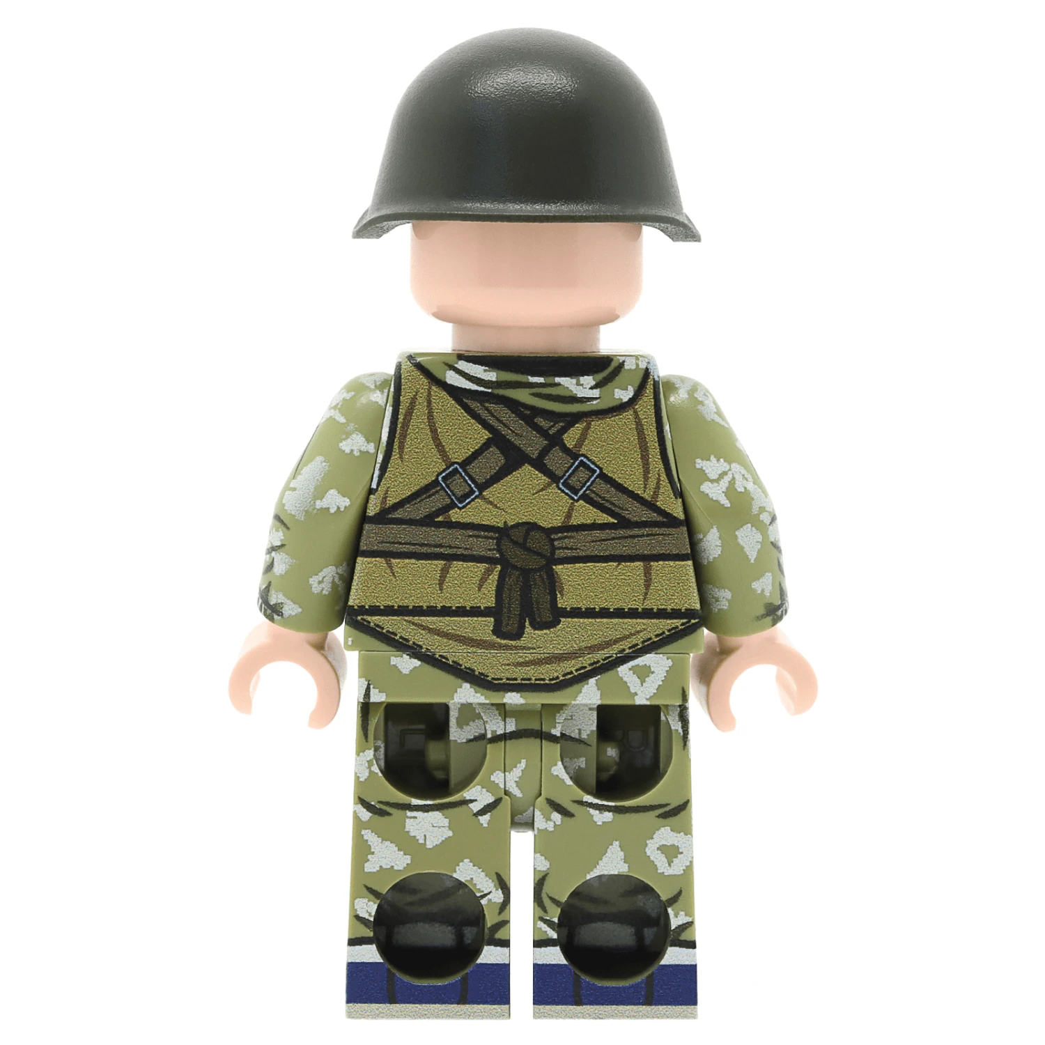 This minifigure features camo printing around the arms, and comes with a BrickArms AKS-74U and SSh-40 helmet.