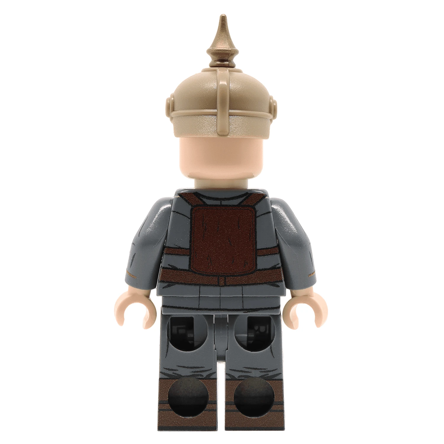 The Imperial German Army was among the strongest of its time, with an emphasis on efficiency, high quality training, and experienced and capable officers. Even so, waging a war on two fronts and having the conflict wage on far longer than intended after the failure of the Schlieffen Plan put a considerable strain on the army. The soldiers from the beginning of the war looked quite different than those near the end. While the colour of field grey never really changed, the red piping was still very prominent on the tunic and trousers. The Pickelhaube was standard issue at the beginning of the war, and was usually worn with a cover. This would see widespread use until 1916 and the development of the stahlhelm.