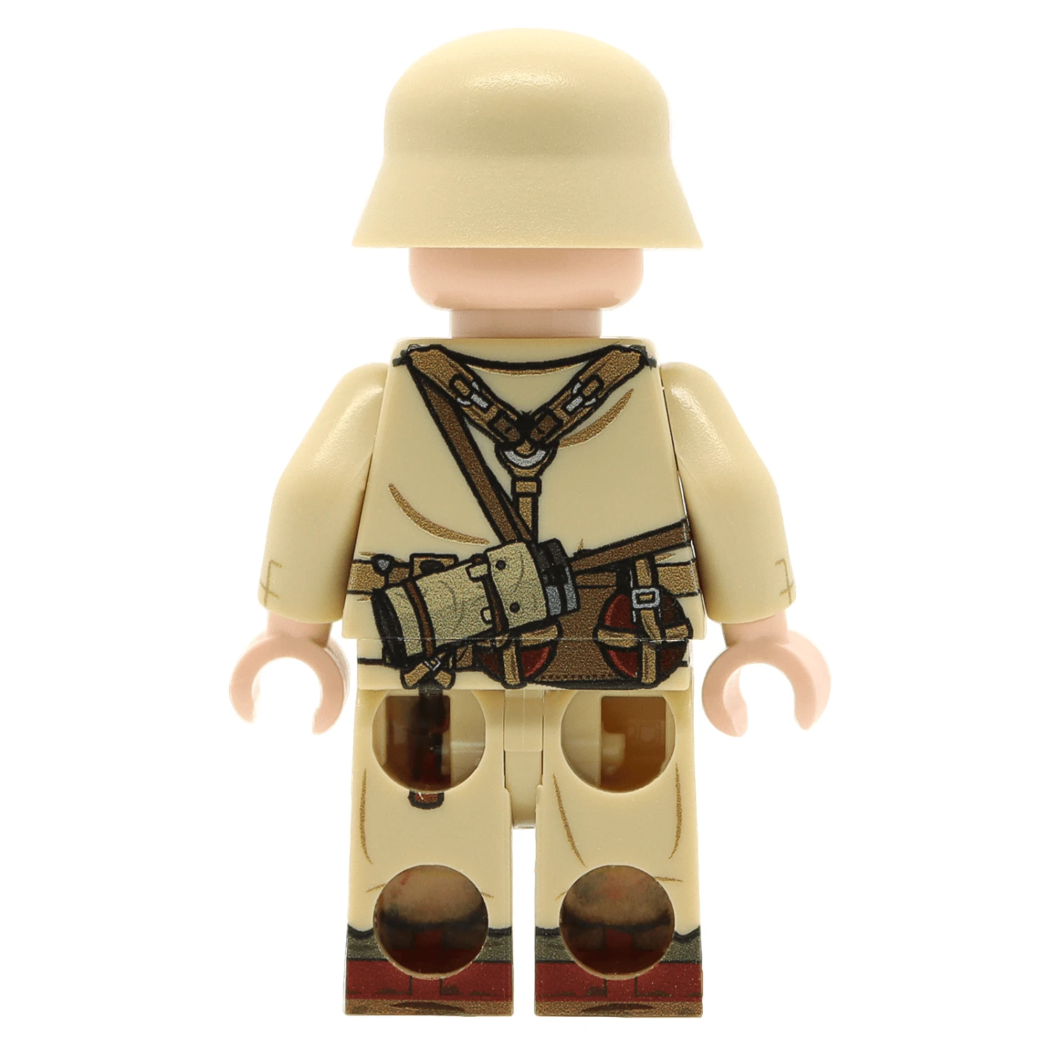 The Afrika Korps (Deutsches Afrikakorps, DAK) was the German expeditionary force in Africa during the North African Campaign of the Second World War. They were initially sent to shore up the Italian defence of their African colonies, under the leadership of the accomplished general Erwin Rommel. Taking the offensive, the Afrika Korps would initially push back the British 8th Army, with the trademark tactics of aggression and surprise used by Rommel and his panzers to considerable effect. Their advance was checked at the famous Second Battle of El Alamein, and what followed was their retreat to Tunisia and eventual surrender.