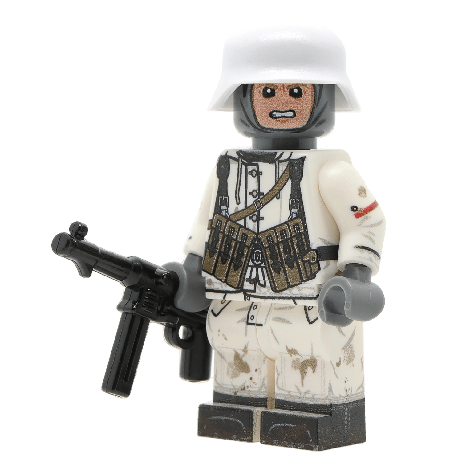 United Bricks custom printed collectable minifigures are printed on genuine brand new LEGO parts using a high quality UV printing method. They make the perfect gift or addition to a collection, and are a great way to learn history through building and creating scenes. The WW2 German Rifleman minifigure features a fully printed 360 torso and legs, along with a printed head. It also comes with a Brickarms stahlhelm helmet and MP40.