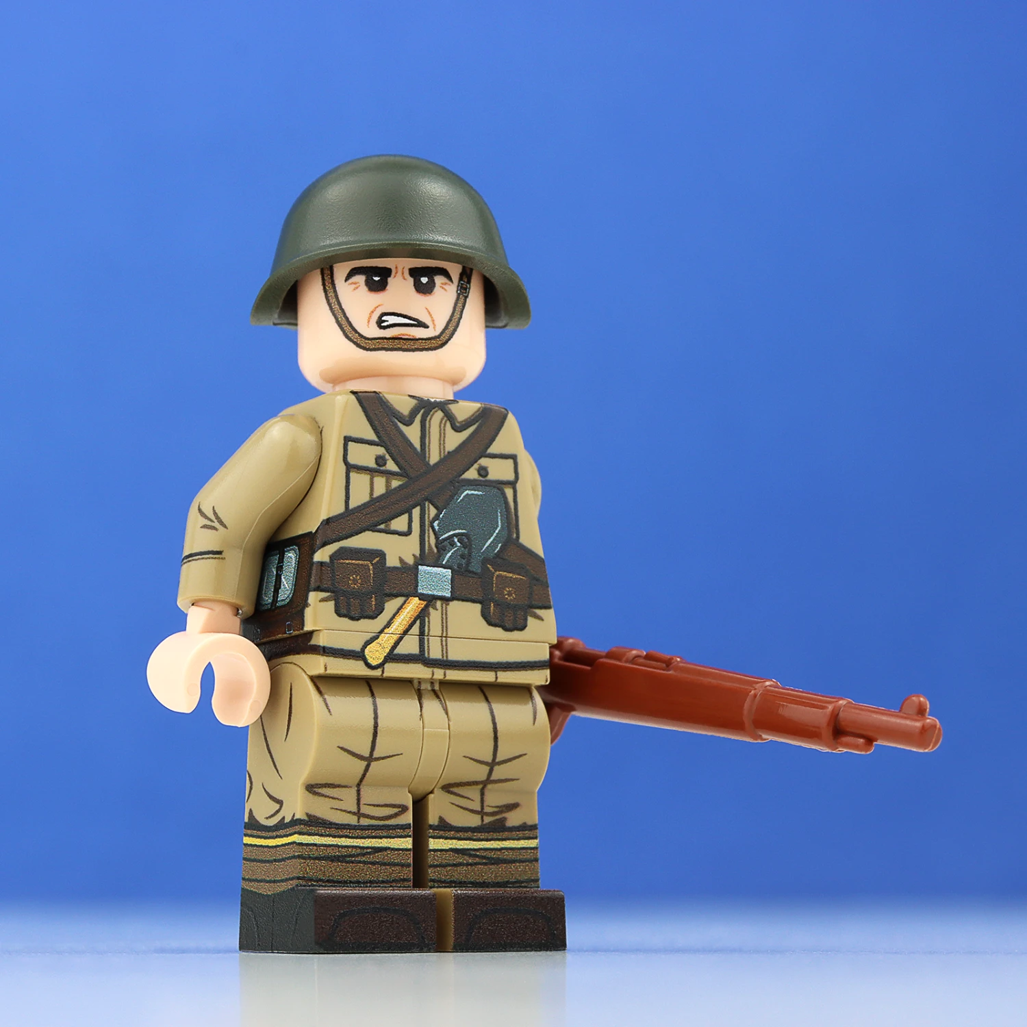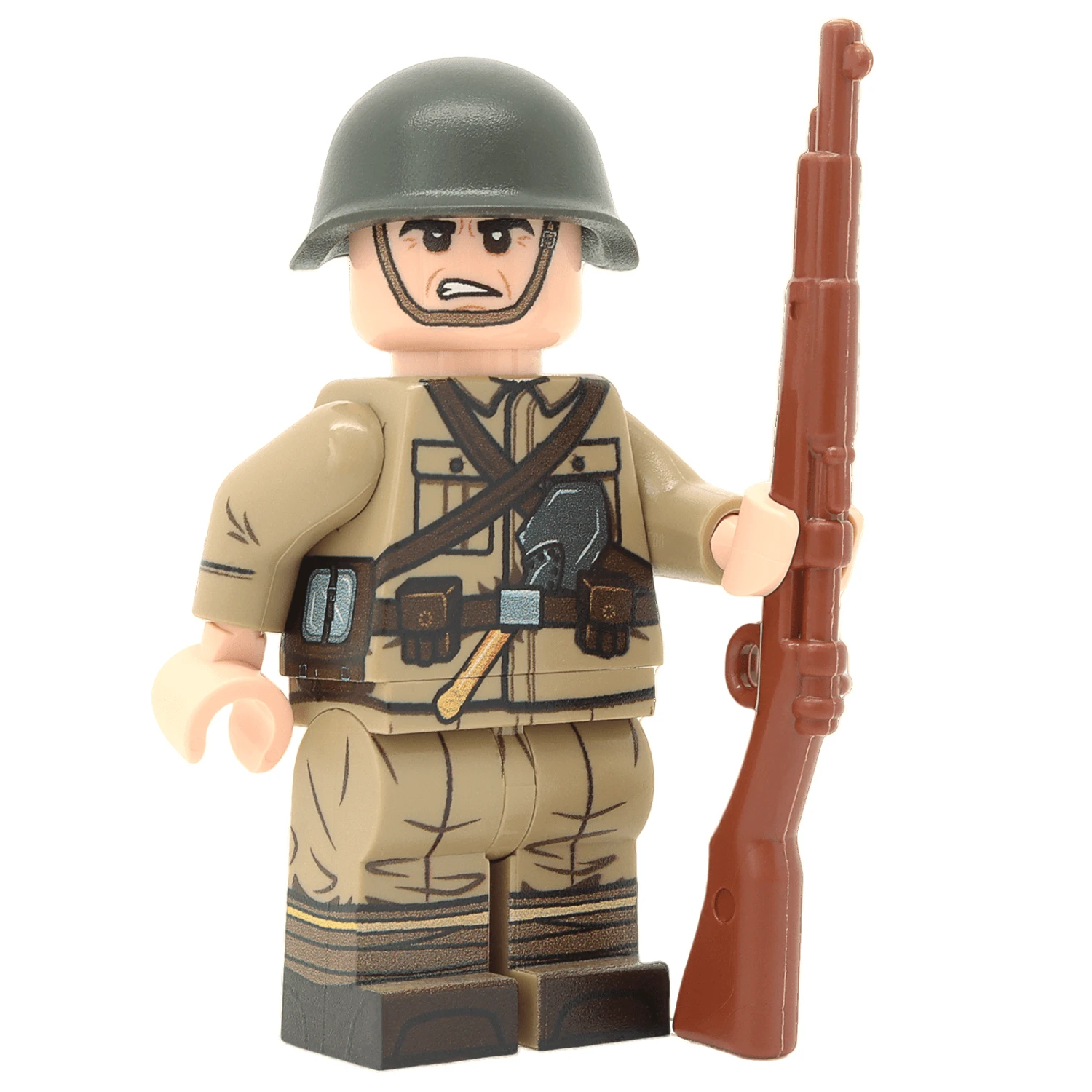United Bricks custom printed collectable minifigures are printed on genuine brand new LEGO parts using a high quality UV printing method. They make the perfect gift or addition to a collection, and are a great way to learn history through building and creating scenes. This Minifigure features a fully printed 360 torso and legs, along with a printed head. It also comes with Brickarms SSH Helmet and KAR Rifle.
