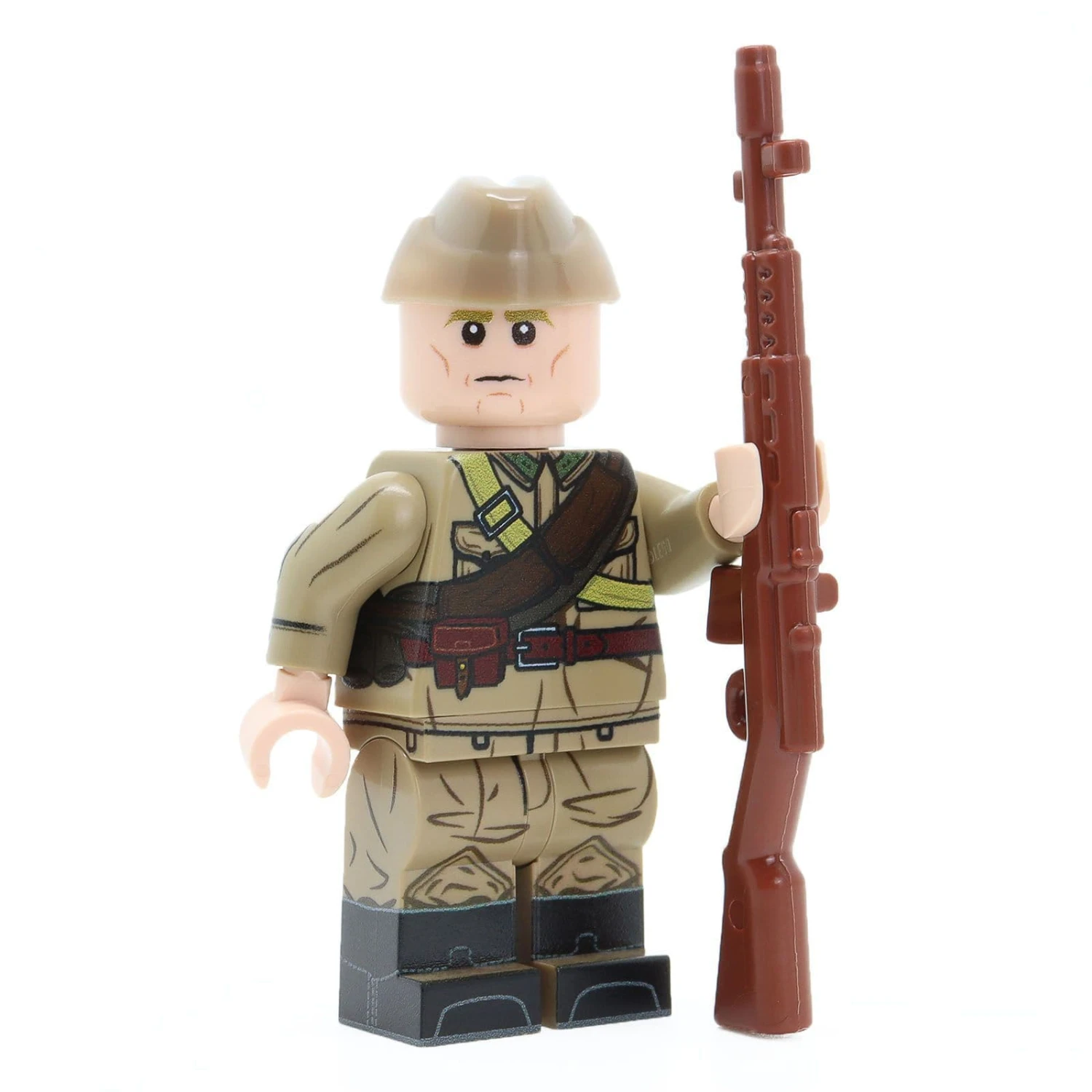 United Bricks custom printed collectable minifigures are printed on genuine brand new LEGO parts using a high quality UV printing method. They make the perfect gift or addition to a collection, and are a great way to learn history through building and creating scenes. Comes with dark tan Combat Brick side cap and brown BrickArms SVT-40.